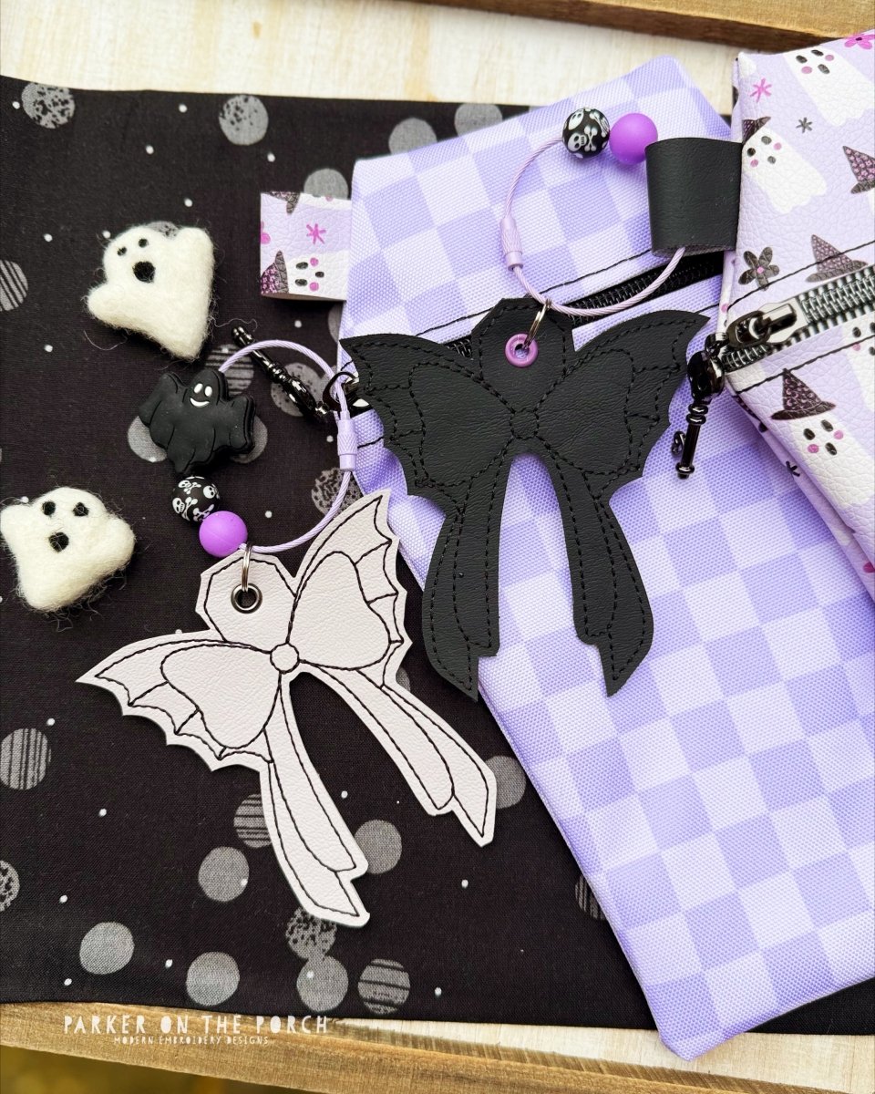 Bring a little spooky-cute style to your stitching with our Bat Bow Bag Tag! This in-the-hoop embroidery design features a fun bow shape with bat wings—perfect for Halloween flair or year-round gothic vibes.