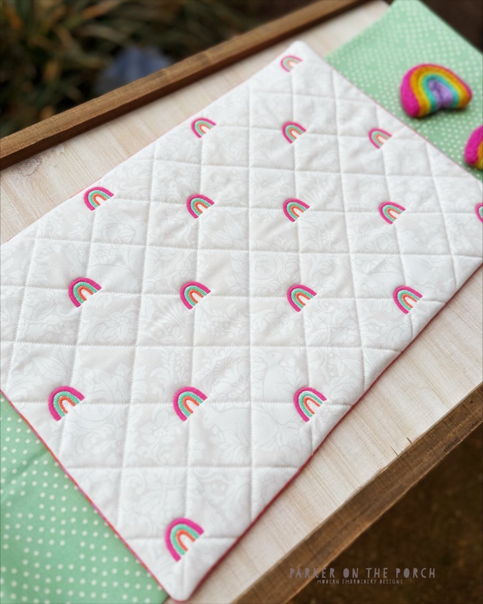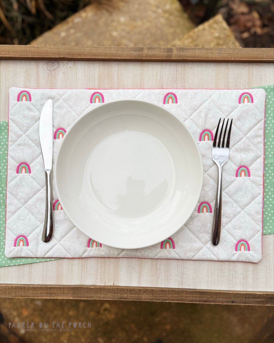 Add a burst of color to your table with the Quilt Rainbow Placemat! This vibrant in-the-hoop project features a quilted background and cheerful rainbow design, perfect for bright kitchens and colorful handmade décor.