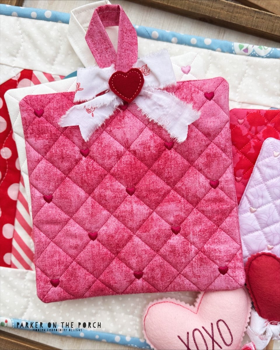 Add a cozy handmade touch to your kitchen with the Quilted Hearts Hot Pad! This fully in-the-hoop design features classic quilted heart details stitched into a soft, padded hot pad. A practical project that’s just as cute as it is functional — perfect for everyday use or heartfelt gifts.