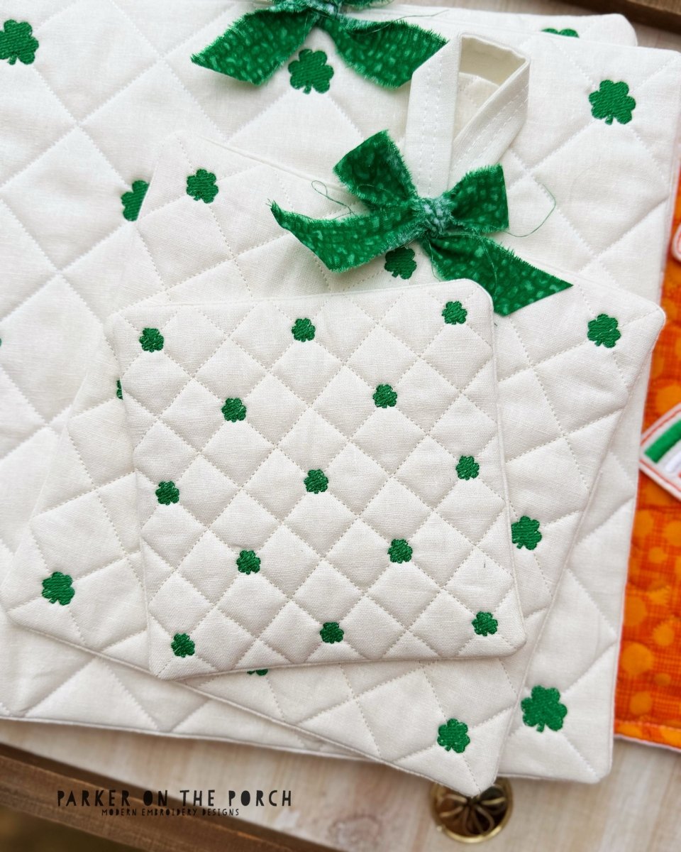 Add a little lucky charm to your table ✨ These fully in-the-hoop quilted shamrock coasters feature clean quilting, enclosed seams, and a polished finish — quick to stitch and perfect for gifting.