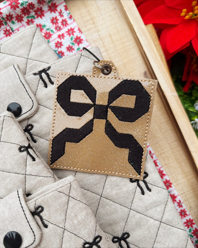 Bow Quilt Block Bag Tag – Digital Embroidery Pattern Download