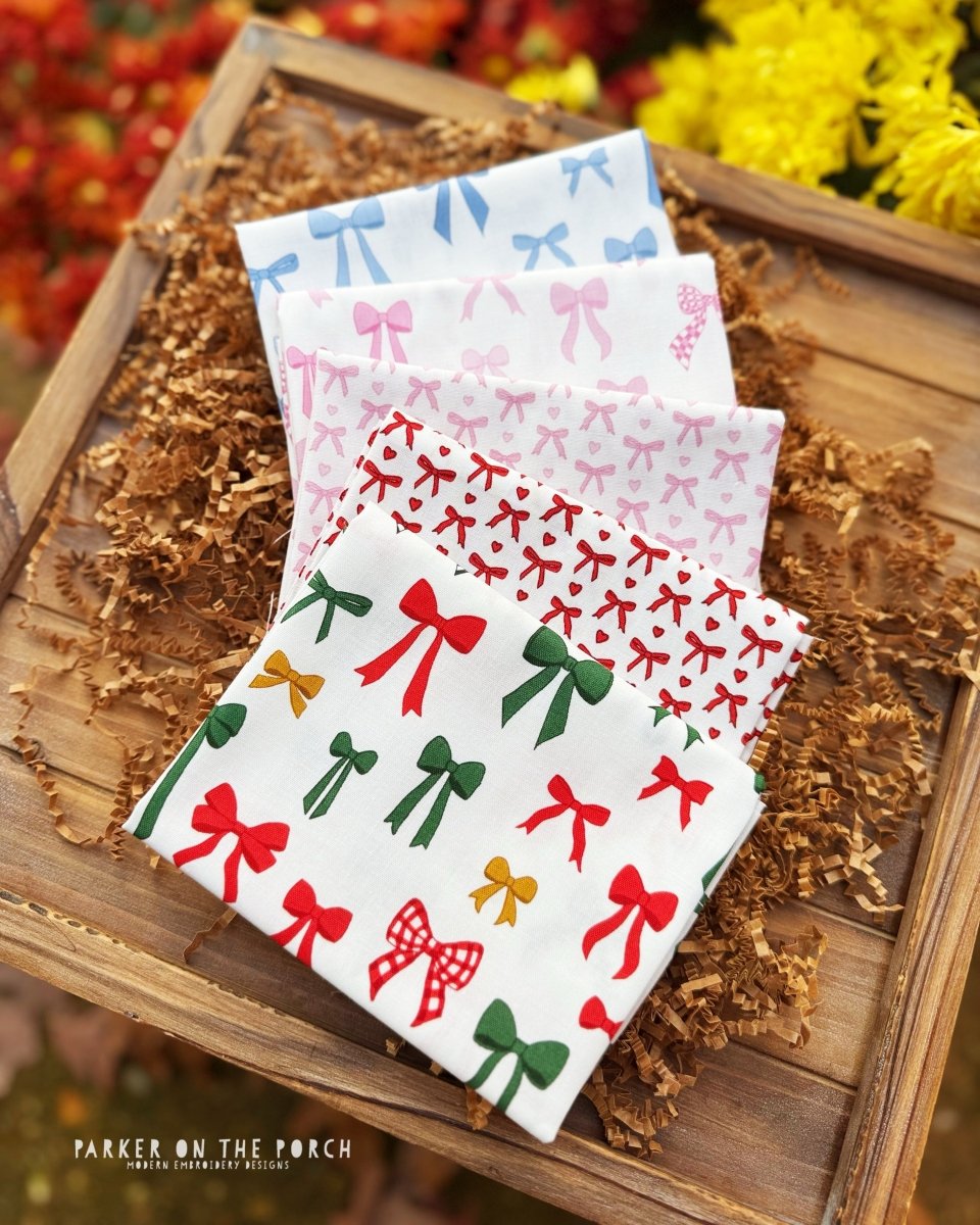 Listing includes 5 Fat Quarters (18x22) Tied with a Bow by RJR Fabrics. Fabrics are not restocked once sold out.