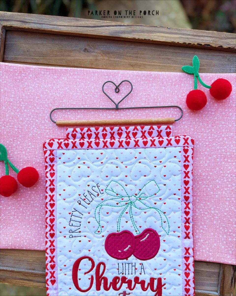 6" Heart Quilt Holder with Wooden Dowel - Shown with an 8x12 Mini Quilt.