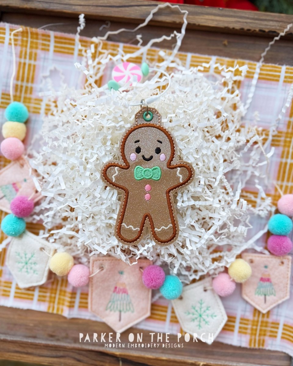 Add a festive handmade touch to your holiday projects with the Gingerbread Boy Bag Tag! This adorable in-the-hoop design features a cheerful gingerbread boy with classic icing details, stitched cleanly for a polished finish. Perfect for backpacks, gift bags, stockings, swaps, and zipper pulls, this quick-stitch project is ideal for holiday crafting and last-minute gifts.